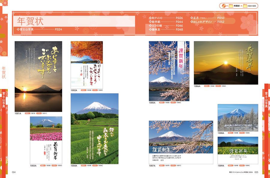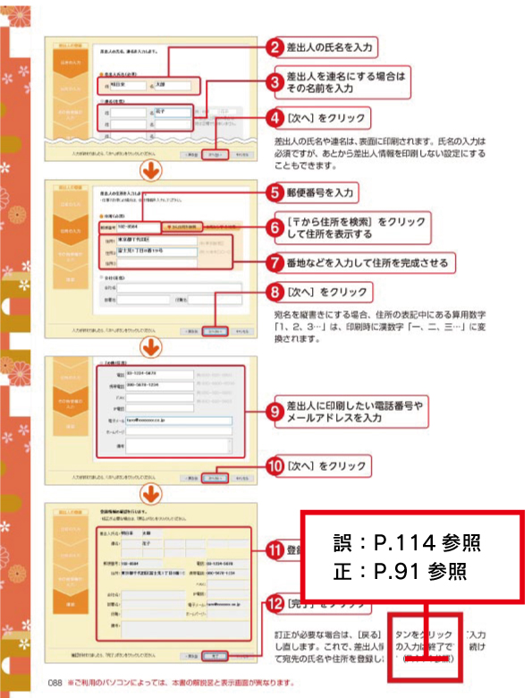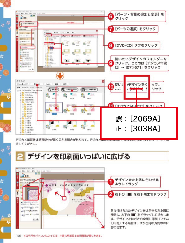 ※本書に収録されている「はがきデザイン」のうち、一部デザインは「文字なし」を選んでも何らかの文字が残るものがあります。また「添書なし」「文字なし」デザインが同じ場合があります。
