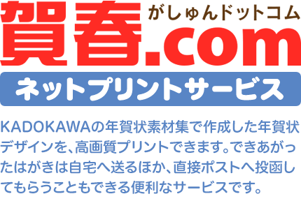 「賀春.comネットプリントサービス」は、富士フイルムイメージングシステムズ(株)の総合年賀状印刷サービス「ウェブポ」を利用しております。